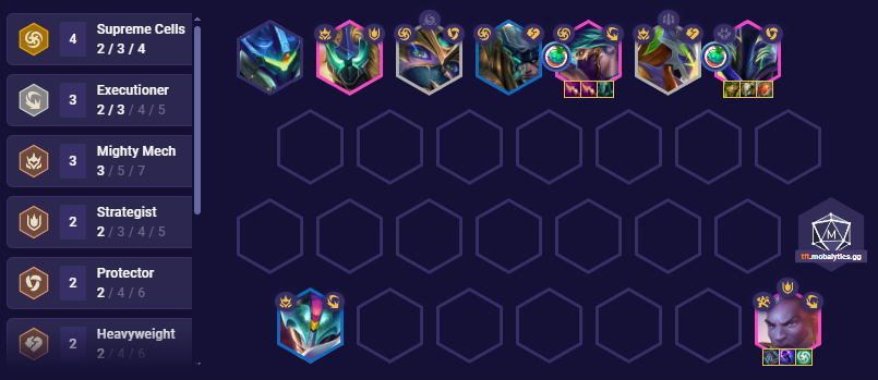 We lean towards the Yuumi boss fight as it features a wall of tanks that’s tough to break through with a standard front to back comp. Luckily for us we have the perfect team comp to counter this, Supreme Cell Akali. Akali has insane backline access and with Zoe’s Guide Master, you can craft BIS items for Akali, turning her into a 1v9 menace that cuts through the backline and carries the entire fight.