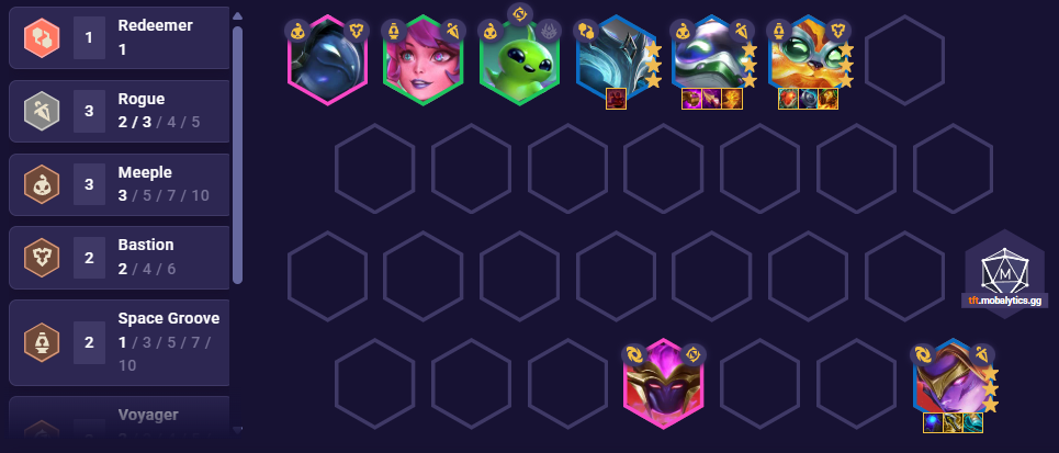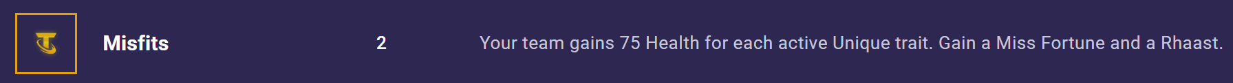Misfits grants 75 Health for each active unique trait, while also giving you a Rhaast and a Miss Fortune. This is perfect for comps that stack multiple traits, and the bonus Health synergizes really well with the added resistances from the Redeemer trait, making your board significantly harder to kill.