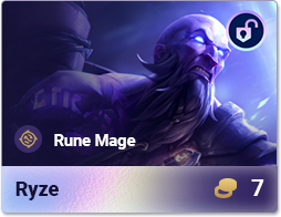 Our last unlockable 7-cost champion is Ryze, He's one of the most unique champions in TFT history, and here's why. Ryze benefits from every region trait activated, making his spells gain different abilities from each region, so the more traits you have, the better. To unlock Ryze, you need to have 5 region traits activated for one round while being level 8, and then he will appear in your next shop. Ryze is commonly played in Fast 9 boards, as his kit is incredibly strong, and he fits easily into different comp variations. The easiest way to fit in 5 Regions is to go for ones that only need 2 units, like Shadow Isles, Shurima, Piltover and Yordle. Here is a level 8 board with low cost units that will activate Ryze.