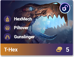 Next up is the T-Hex, a unit in this set that deals massive damage with its powerful AOE laser. Unlocking this champion depends on your Piltover star level, once you hit 9, the Hex is all yours. To achieve this, you’ll need at least four 2-star Piltover units and a random 1-cost unit.