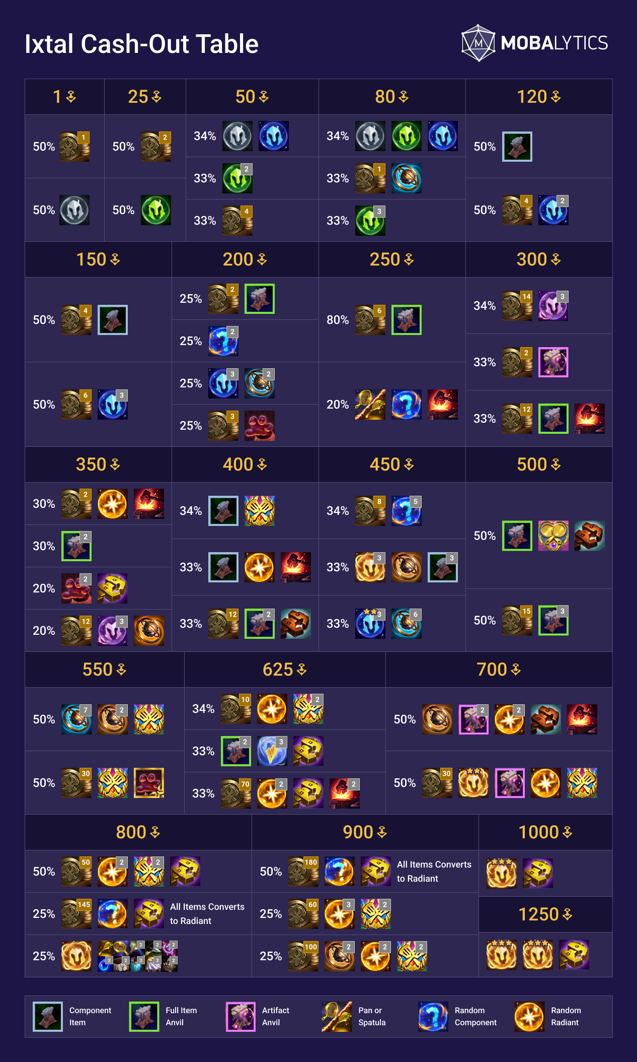 Ixtal Cash-Out Table