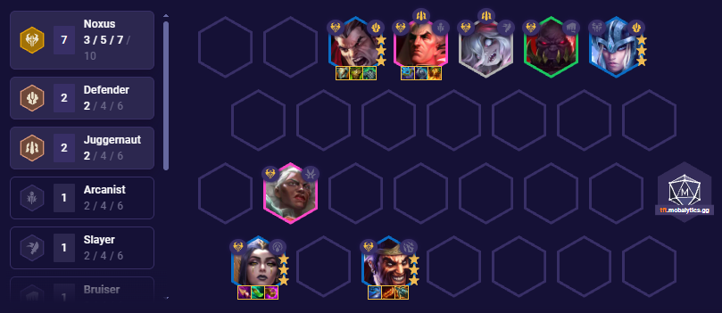 In this comp we're going to be rerolling Noxus units! We will aim to 3-star all 3 3-cost Noxus units while also going for Sejuani 3 as she's a 3-cost Defender. After you'll push levels to add in more Noxus units to buff up Atakhan.