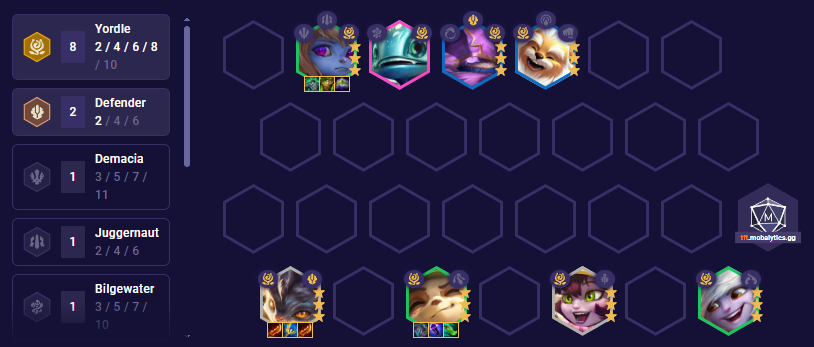In this comp you'll be playing Rumbles hero augment. Your aim will be to 3-star as many Yordles as possible as you gain a bigger buff for each 3-star Yordle on your board.