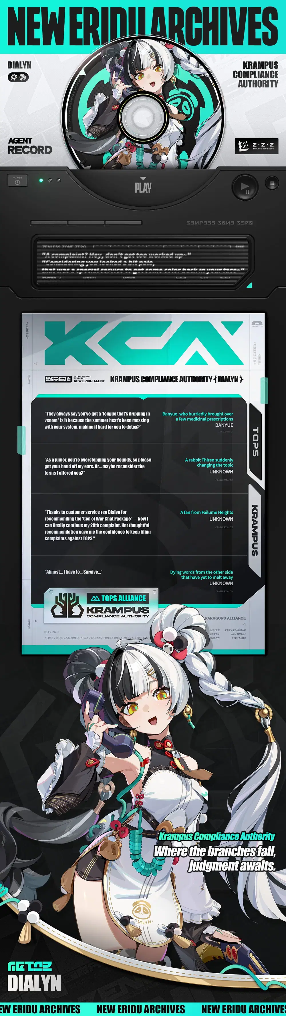 Upon entering combat, Dialyn recovers 20 Energy. This effect can trigger once every 180s in Investigation Zone Mode. While the Overwhelmingly Positive effect is active, Dialyn's ATK increases by 500.